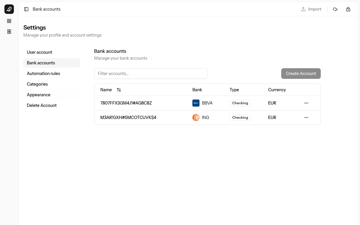 Import a year's worth of transactions in under 10 seconds. Simply export a CSV or XLS file from your bank and drag it into Whisper Money. All data is encrypted locally before upload.